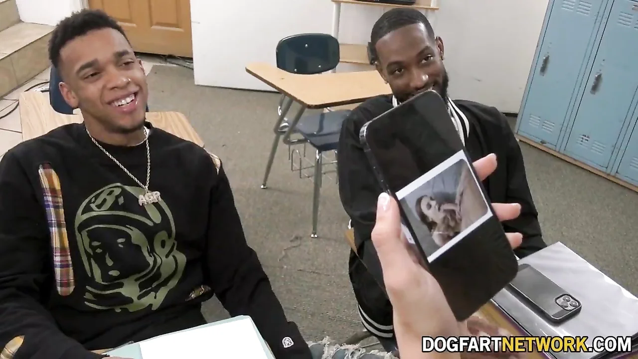 These two repeaters don't get the desired grade in their tests and ask the teacher for a tutorial. She proposes a plan: since they are very clumsy and won't be able to get better grades, they should let their huge cocks do the work. This way everyone wins and she cheats on his girlfriend.