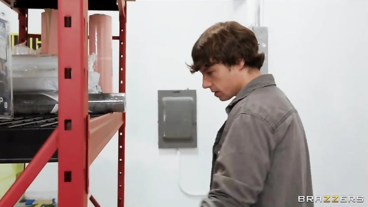 • De secretaris van het bedrijf gaat naar het magazijn om seks te hebben