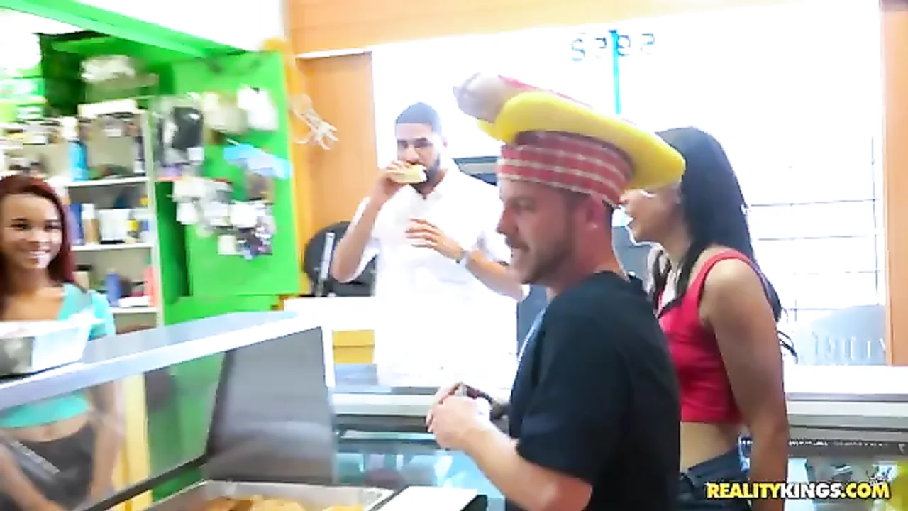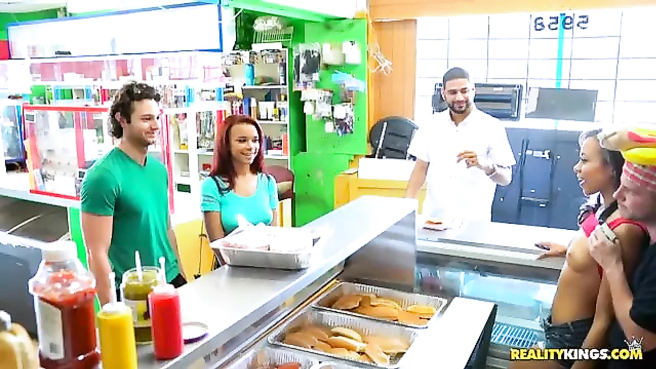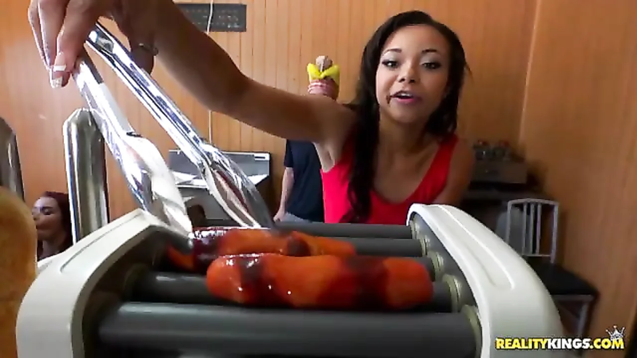 Que coisa suja a vagabunda Raven Redmond fez desde que chegou a uma loja onde eles fazem uns cachorros-quentes bons, com ketchup e todos aqueles molhos que os americanos colocam neles. Mas hoje, além do cachorro-quente, ela também vai coma algo quente. . Um bom pau pra caralho, um pau tamanho XXL!